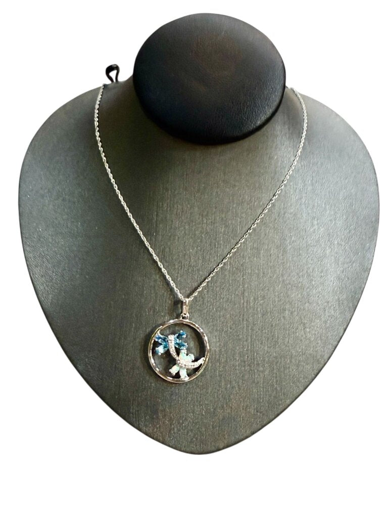 10KT WG DRAGON FLY PENDANT W/BLUE TOPAZ & OPAL ON 18" CHAIN
