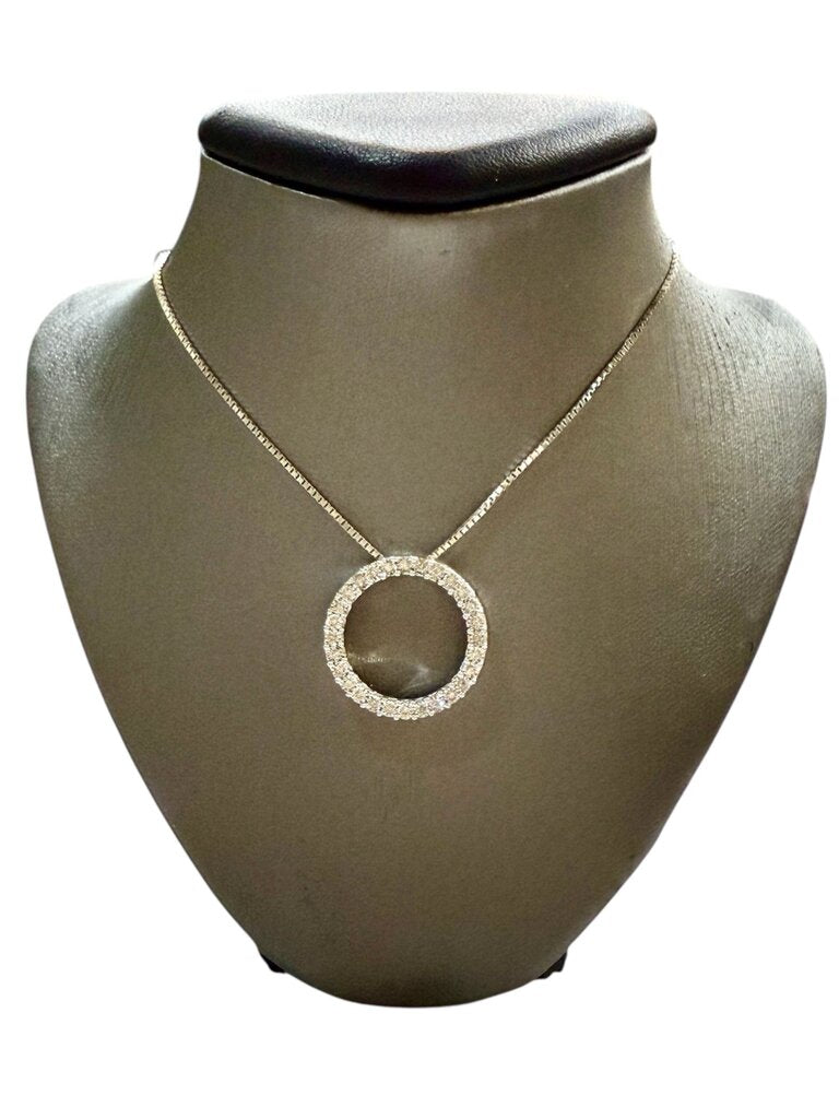 14KT WG 20" BOX CHAIN W/10KT WG ETERNITY CICLE DIAMOND PENDANT 1/3CTTW