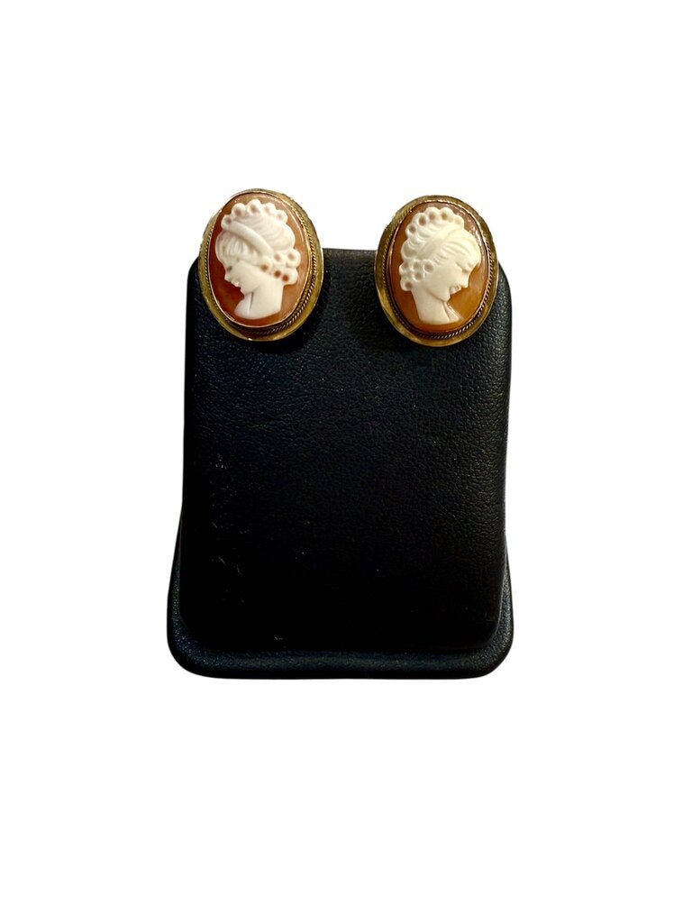 14KT YG 3/8CTTW STUDS W/ SCROLLING GOLD JACKETS