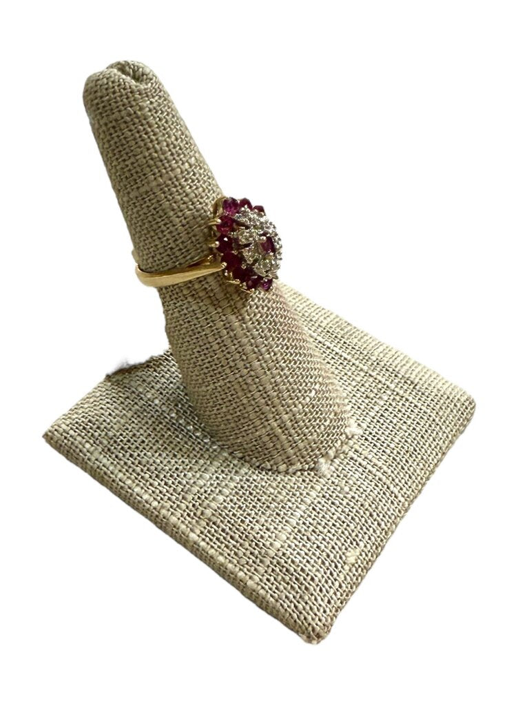 14KT YG RUBY & DIA CLUSTER RING SZ 6.5