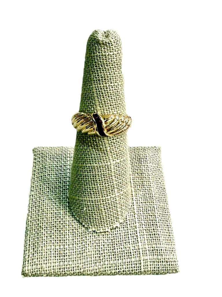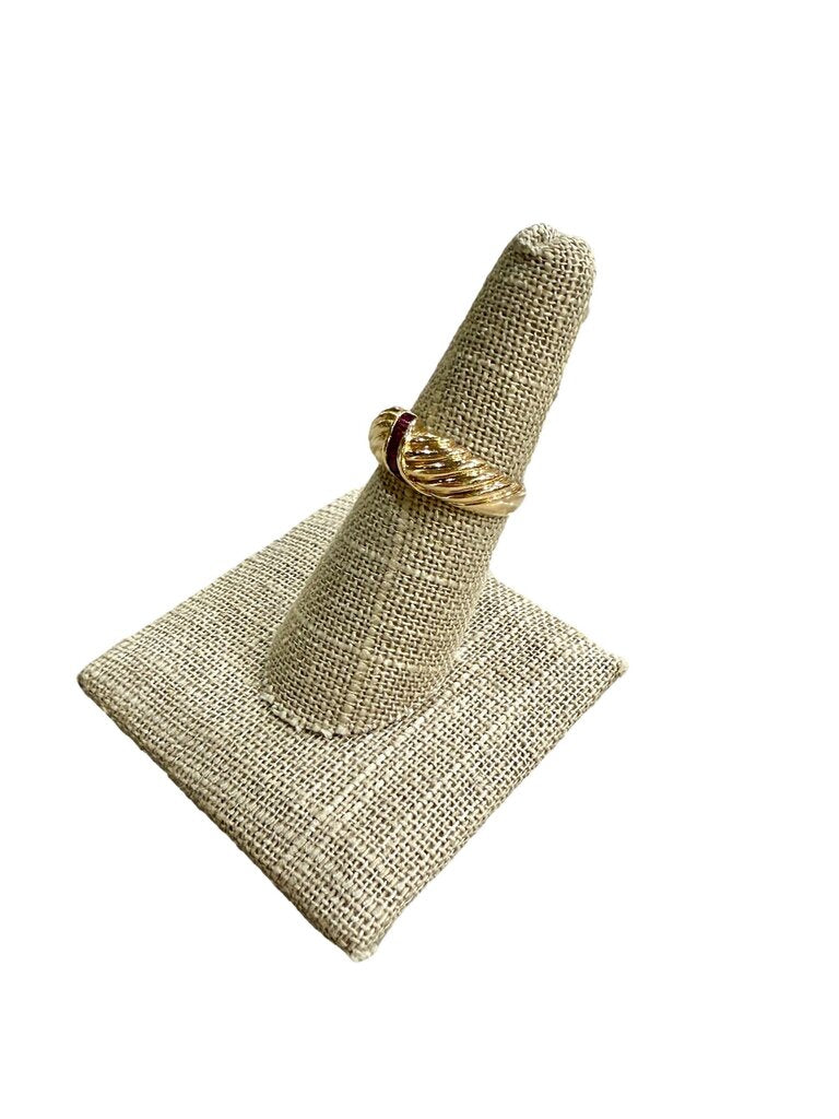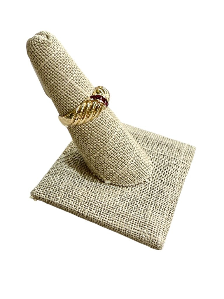 14KT YG RUBY PC CHANNEL SET HOLLOW SHELL RING SZ 6.5