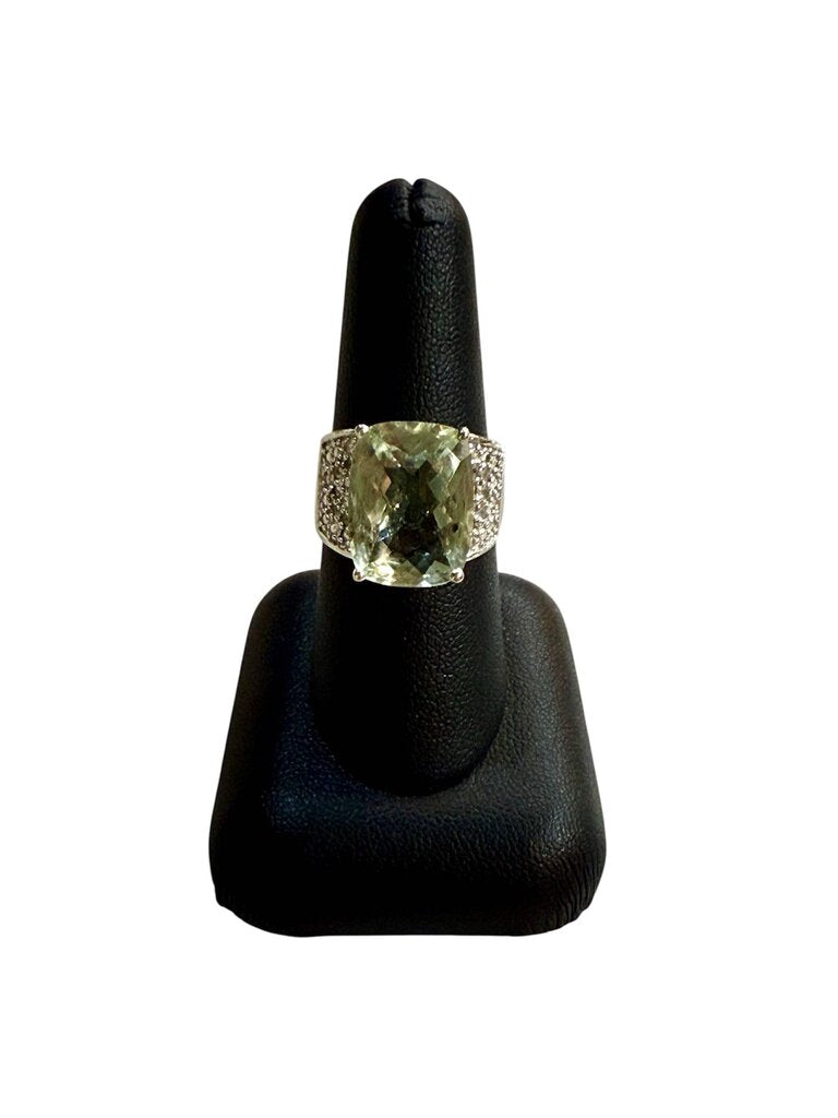 SS ALONGATED CUSHION CUT PRASIOLITE STONE ON WIDE BAND SZ 8