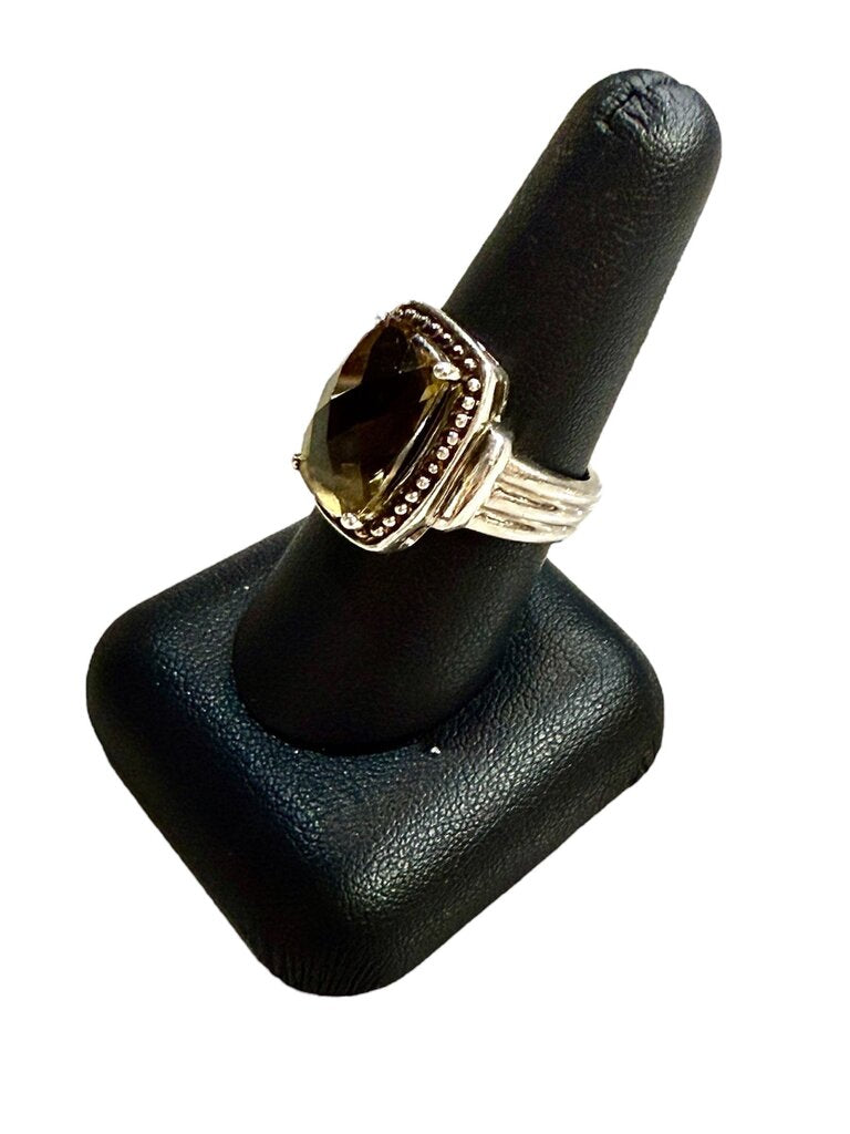 SS BROWN QUARTZ BEADED DESIGN RING SZ 8