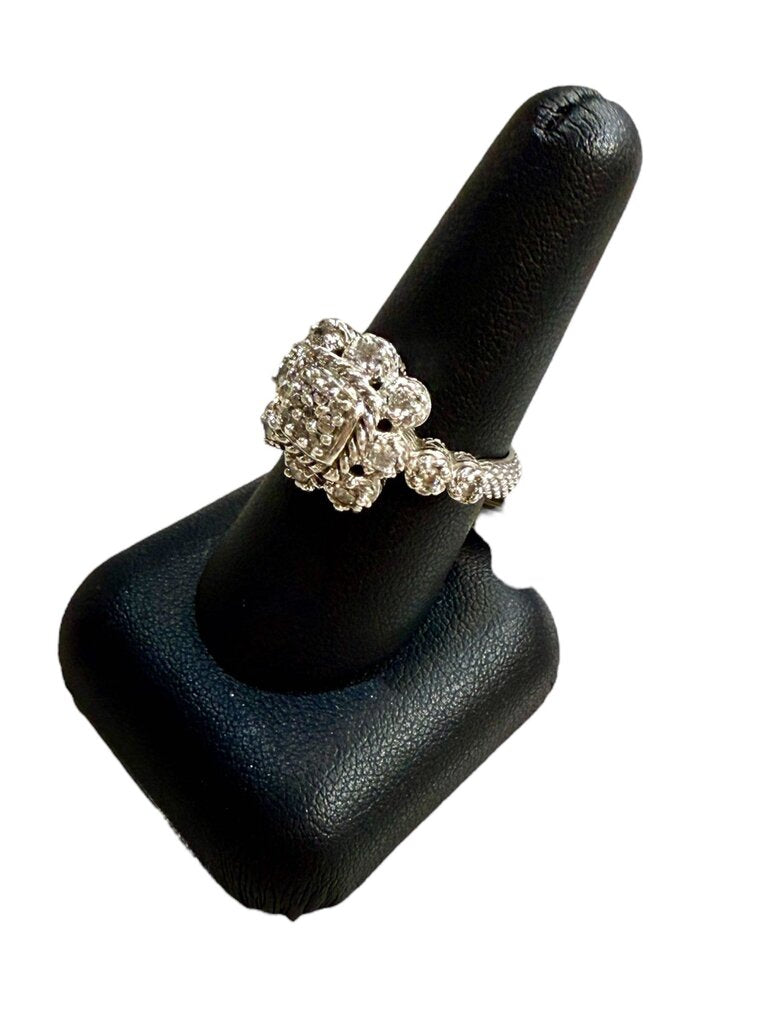 SS CAVIER DESIGN CZ ROPE DESIGN HALO RING SZ 8