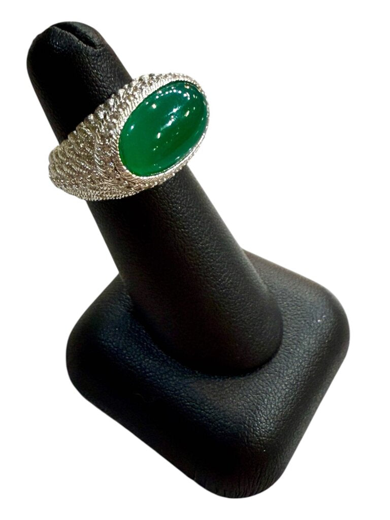 SS LG OVAL BEZEL SET GREEN TURQ RING SZ 6