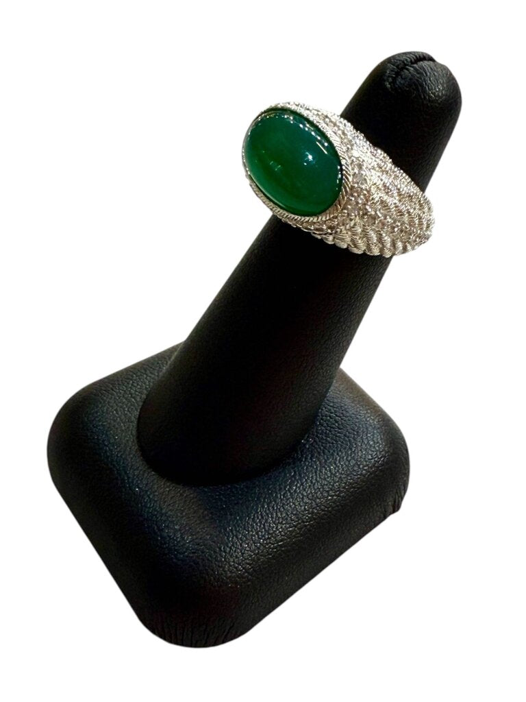 SS JUDITH RIPKA LG OVAL CAB EMERALD W/HALO SRING SZ 5