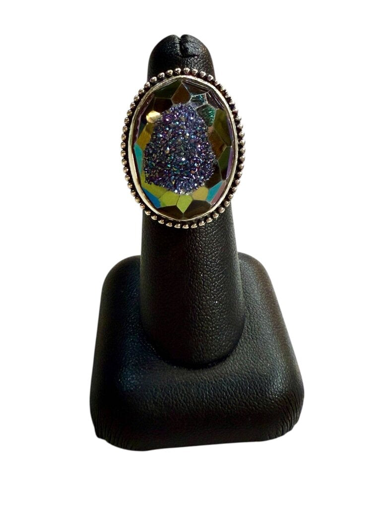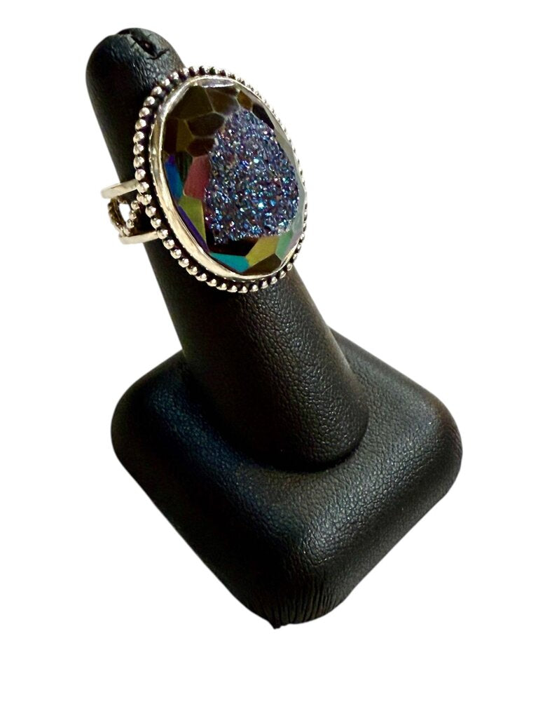 SS LG OVAL DRUZY QUARTZ BEZEL SET ADJUSTABLE BAND SZ 5.5