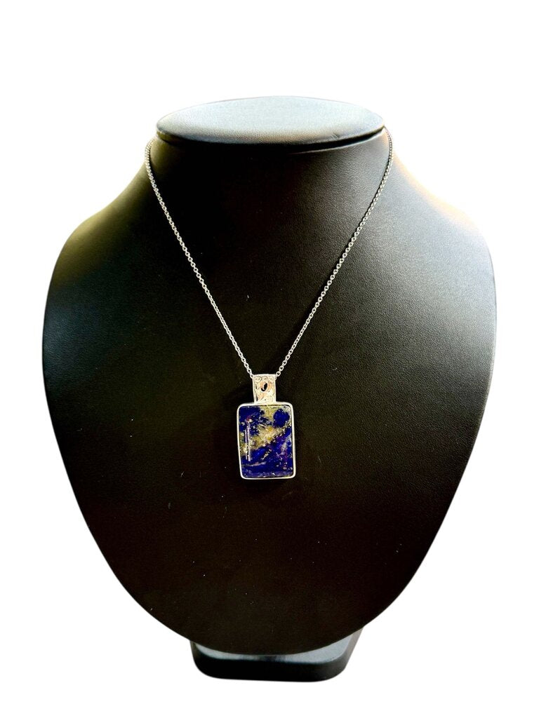 SS LG SQUARE LAPIS PENDANT ON CHAIN