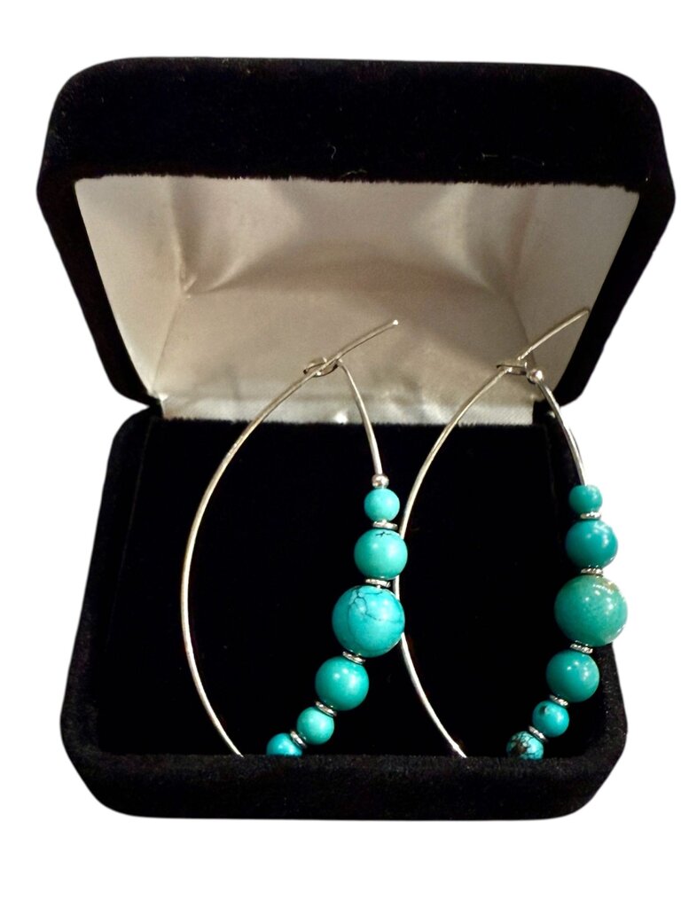 SS MARQ SHAPE MULTI TURQ BEAD EARRINGS