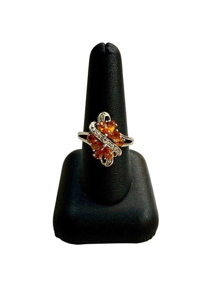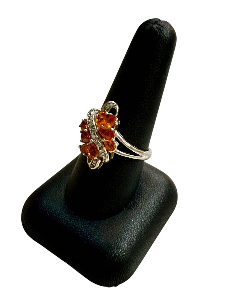SS ORANGE TOPAZ CLUSTER STYLE RING SZ 9