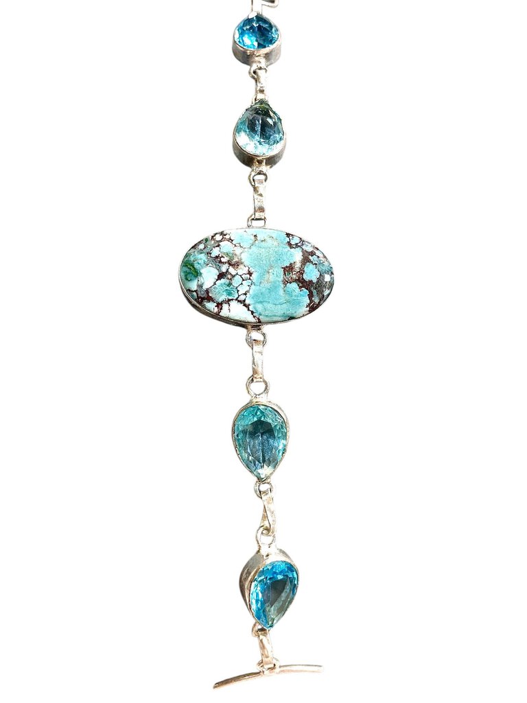 SS OVAL TURQ CTR W/ BLUE TOPAZ PEAR SHAPE TENNIS BRACELET