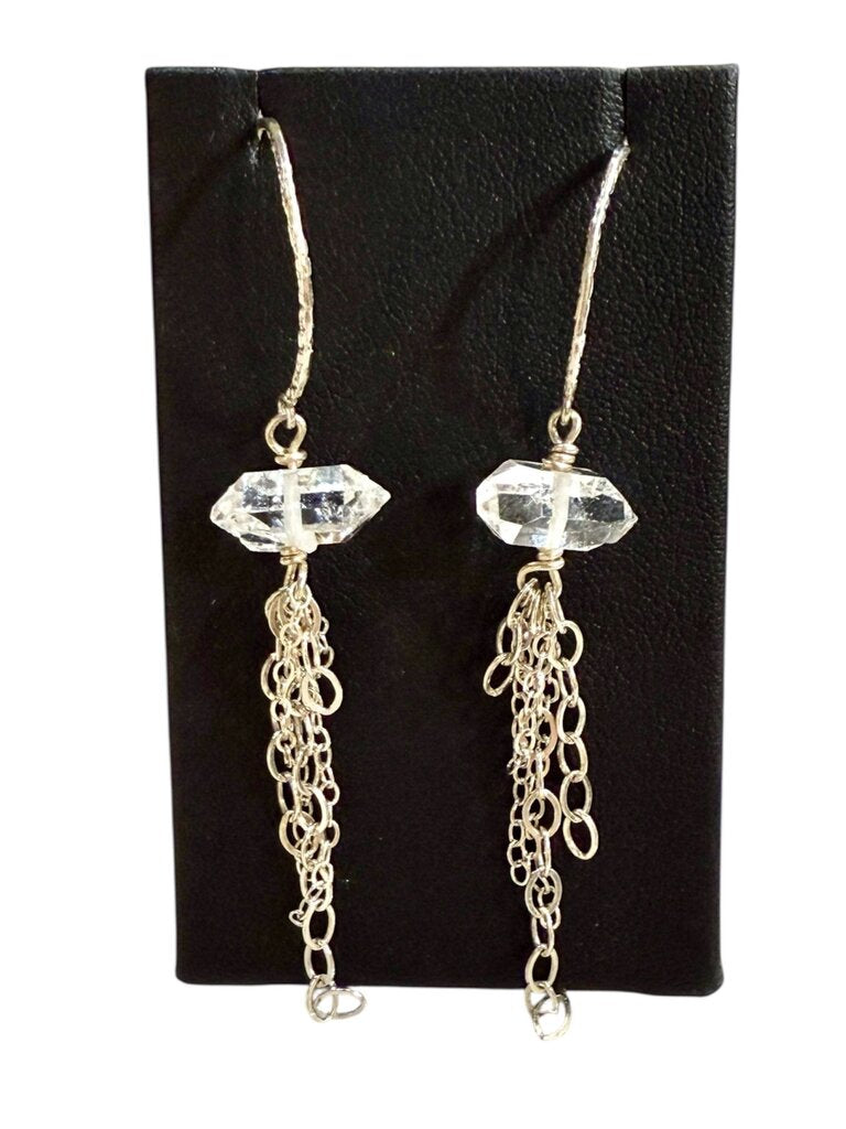 SS QUARTZ CRYSTAL THREADED HOOP EARRINGS