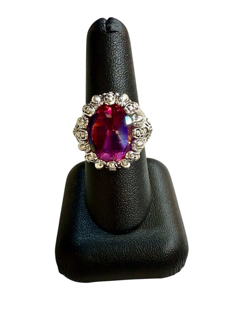 SS SIM PINK STONE BEADED DESIGN RING SZ 8