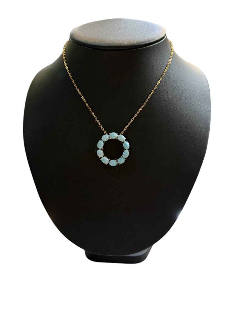 SS OVAL TURQ ROPE DESIGN W/ LEAVES PENDANT ON CHAIN
